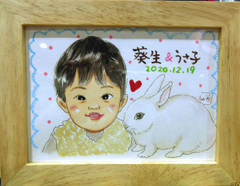 こちらはご家族似顔絵です。龍のトレーナーがとっても可愛くて、お揃いの兄弟くんたち。弟君は大ハッスルでお父さんがあちこちと追いかけてくださってました。これまでも似顔絵を描いてこられていらっしゃるそうで、コレクションおひとつに入れていただけました。ありがとうございます!ぜひ、これからも楽しく元気に育ってくださいね〜。またお待ちしております。