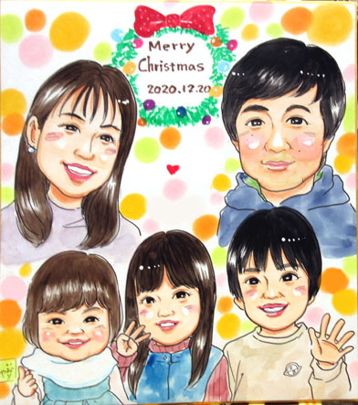 こちらは五人家族さんの似顔絵でした!今年最後の大物ですね笑。