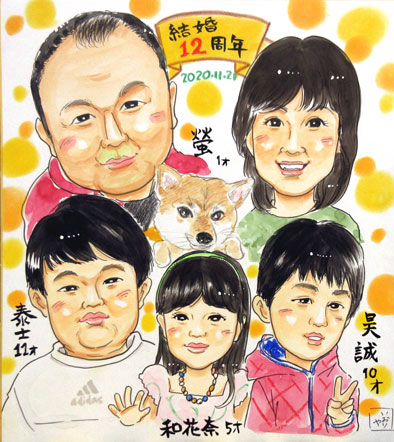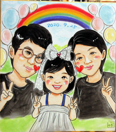 こちらは元気いっぱいのご家族です。毎年似顔絵を描いてもらうそうで、今回はいおりやに。