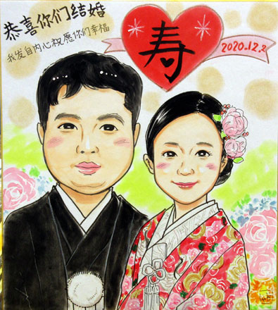 日本のことが大好きな方だそうなので、和装での似顔絵をご要望いただきました。