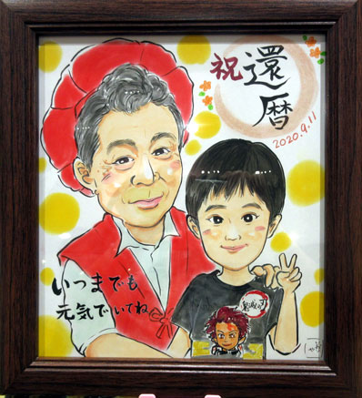 お父さんの還暦祝いにというご依頼でした。お孫ちゃんが鬼滅の刃が好きなんだそうです。