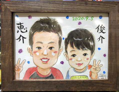 お兄ちゃんがサッカー大好き君で、週末はほぼサッカーだそうです。この日は台風の影響でお休みなったのでお買い物に来て似顔絵を描かせていただきました。