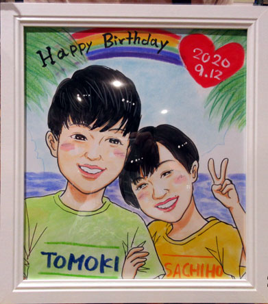 彼女の誕生日祝いに似顔絵をプレゼントという粋なご依頼でした。