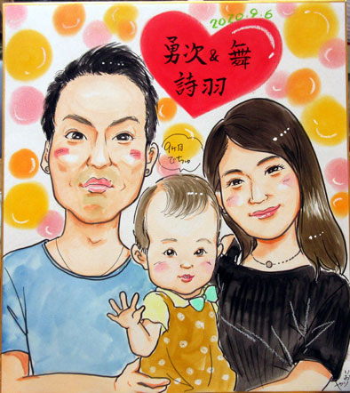 ご家族似顔絵のご依頼でした。今年中にはお姉ちゃんになるんだそうですよ〜。楽しみですね!これからも家族仲良く楽しく元気に成長されることを願っております。また二人目ちゃんが生まれたらお待ちしてます!