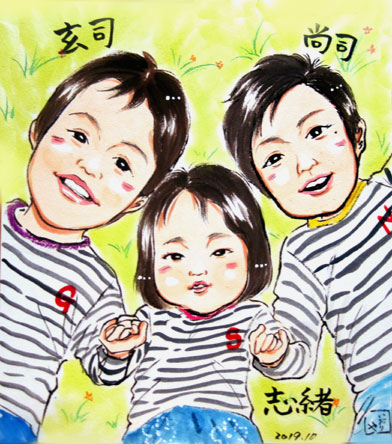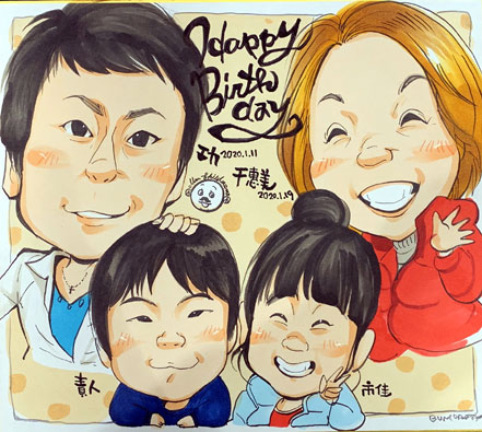 こちらはご家族に記念似顔絵。ママへのプレゼントだそうです。