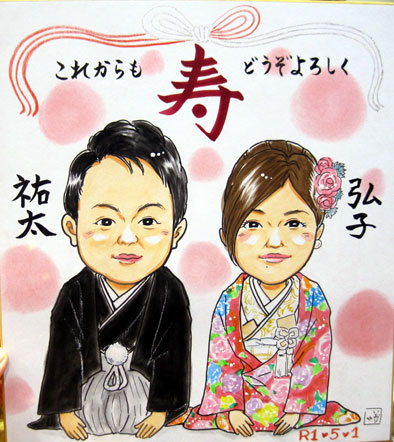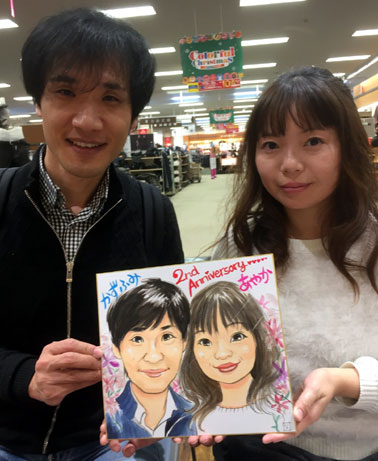 素敵なカップルさんの似顔絵です。毎年似顔絵を描いてもらわれているそうです。素敵ですね。
