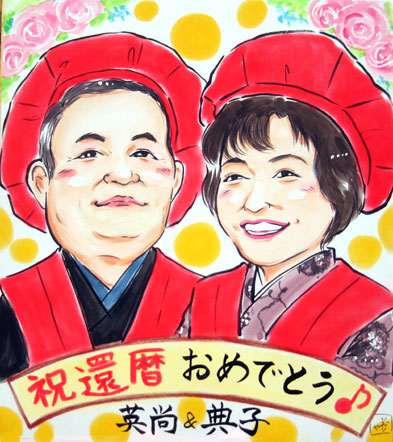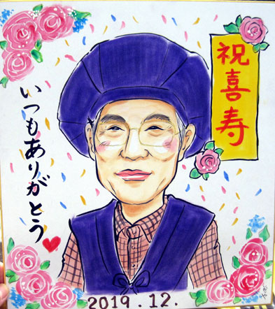 喜寿のお祝い似顔絵。以前も古希の似顔絵のご依頼を頂きました。