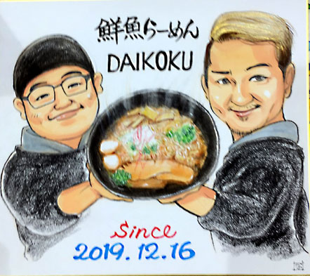 深井に新しくできたラーメン屋さんのお祝いに似顔絵をと言うご依頼でした。