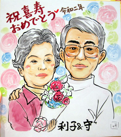 先月にも一度お描きしたお客様からのご依頼で今回は88歳のお祝い似顔絵です。