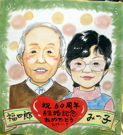 60年はダイヤモンド婚というそうです。50年は良く描かせていただくのですが、60周年は少ないので貴重な経験をさせていただきました。