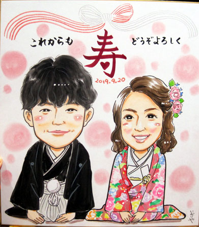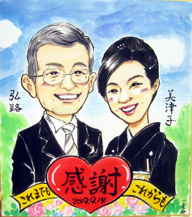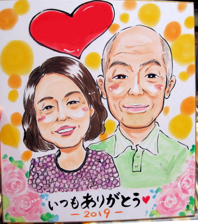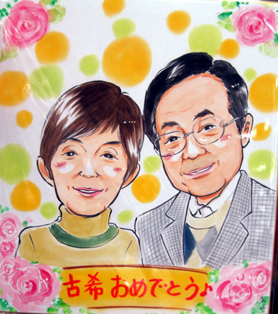 古希祝いの似顔絵のご依頼でした。古希!というにはとても若く感じるご夫婦でした。