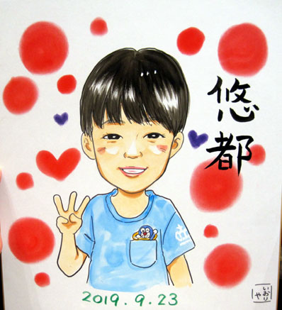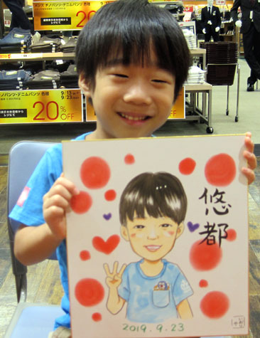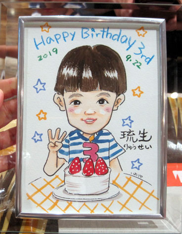 こちらはミニ似顔絵。お誕生日の記念に。とっても印象的なキノコhairがとってもよく似合ってる男の子でした。おめでとう〜。来年もまた待ってますよ^。^