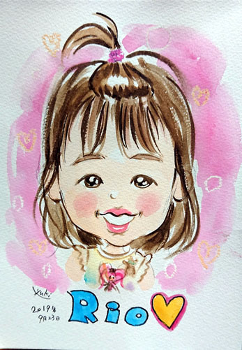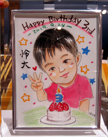 ミニ似顔絵。そして同じくお誕生日記念に。とっても可愛らしいい笑顔が素敵なお子さんです。