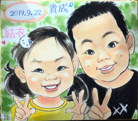 可愛いきょうだいの似顔絵のご依頼でした。ふくふくしたほっぺが愛らしいですよね。