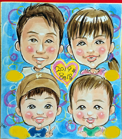 家族似顔絵。素敵なご家族でした。ぜひまた機会があればお待ちしてます。