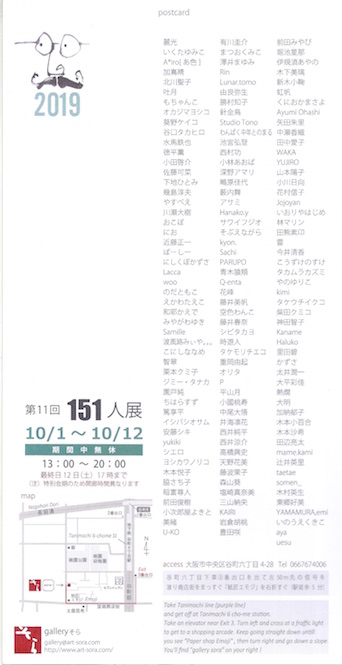 *151人展 ギャラリーそらにて 10/1〜10/12まで